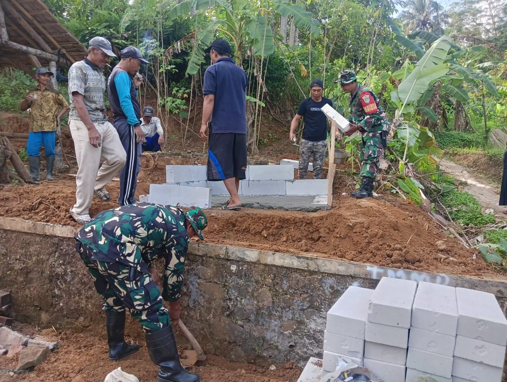 KADUGEDE – Satuan Tugas TNI Manunggal Membangun Desa (TMMD) ke-125 Kodim 0615/Kuningan terus mengakselerasi pembangunan fisik Pos Kamling di Desa Sindangjawa, Kecamatan Kadugede. Hingga minggu kedua pelaksanaan, progres pekerjaan sudah mencapai 75 persen.