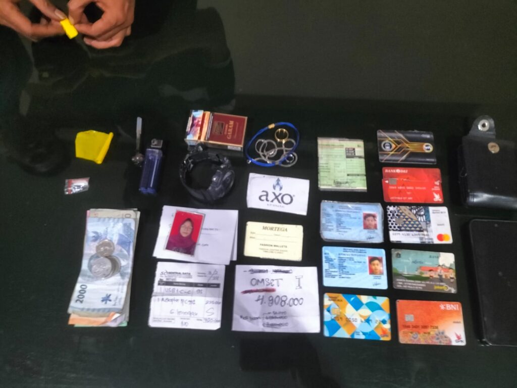 Dari hasil penangkapan tersebut, didapatkan beberapa barang bukti berupa 2 paket hemat Sabu seberat 2 gram. Dengan harga per paketnya senilai Rp.650.000, satu buah alat bantu hisap, uang tunai senilai Rp.347.000, Rokok Gudang Garam Filter, 1 buah HP merk Redmi Not 12, 1 Unit Motor Suzuki FU warna hitam, beberapa buah kartu ATM, KTP, dll.